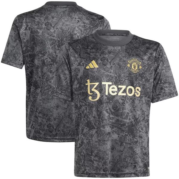 Manchester united maillot d'entraînement d'avant-match uniforme de football vêtements de sport pour hommes kit noir de football chemise haute 2024-2025
