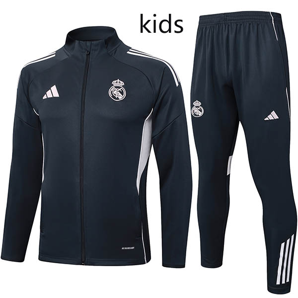 Real madrid veste survêtement enfant grise tenue d'entraînement jeunes équipement 2025-2026